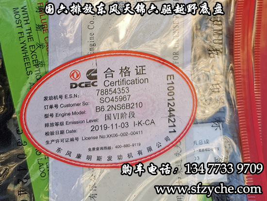 國六排放東風天錦六驅(qū)越野底盤,東風天錦D530一排半駕駛室,6×6驅(qū)動,康明斯B6.2NS6B210國六發(fā)動機210馬力,最大扭矩:850N.m/1100-1700rpm,排量6.2L、韶齒手動六檔變速箱,東風德納車橋,前驅(qū)動橋4.5噸,中后橋都為軍工德納4.5噸驅(qū)動橋,大花紋越野輪胎,軸距3500+1250mm,電動玻璃,方向助力,斷氣剎,ABS,大燈自動調(diào)節(jié),自動調(diào)整臂,選裝原廠空調(diào)。