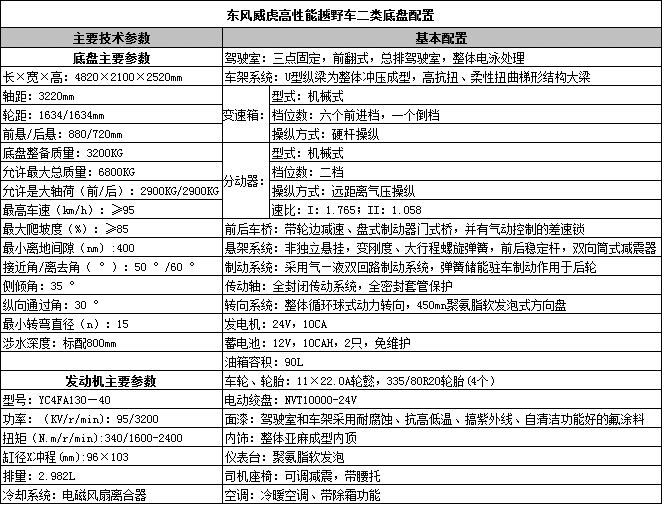 東風牌EQ2070FQ型越野汽車產(chǎn)品主要技術資料 | |||