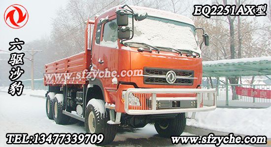 東風(fēng)牌EQ2251AX型沙漠越野車配置:采用東風(fēng)新款D310平頂單臥駕駛室,發(fā)動機:康明斯375馬力國四發(fā)動機 直列增壓中冷六缸水冷柴油機 ISLe375 40;北方奔馳同步器型9擋箱 9T-160 Φ430mm,膜片彈簧拉式離合器,7T前橋,10T 重慶大江雙級減速雙后橋 14.00-20輪胎 (選裝20-20 沙漠胎)軸距3800+1400 鋼板彈簧片數(shù)9/10,油箱350L,貨箱尺寸:5720×2294×800mm,整車外形尺寸:8470×2500,2700×3520,動力轉(zhuǎn)向。如需了解更多東風(fēng)六驅(qū)沙漠車圖片,東風(fēng)六驅(qū)沙漠車價格,東風(fēng)六驅(qū)沙漠車參數(shù),請立即撥打銷售熱線:13477339709 李經(jīng)理 0722-7053060 業(yè)務(wù)QQ:530233927,東風(fēng)越野卡車網(wǎng)址:m.hzqdme.com