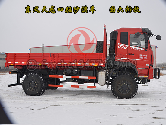 全新國六東風(fēng)四驅(qū)六驅(qū)沙豹沙漠車為特殊行業(yè)精心打造,適合全地形無路區(qū)域的全時(shí)4×4、6×6驅(qū)動車型,選用康明斯9升國六發(fā)動機(jī),動力涵蓋340---400馬力,動力強(qiáng)勁、性能可靠,采用7噸及10噸級雙級輪減前、后橋,離地間隙大、通過性好,前、中后橋配備輪間、軸間差速鎖裝置可適應(yīng)極惡劣道路狀況下的通過要求,先進(jìn)的遠(yuǎn)距離電控氣動裝置可實(shí)現(xiàn)高、低檔及前橋鎖止功能的轉(zhuǎn)換,多管旋流式三級空濾進(jìn)氣系統(tǒng)可有效地阻止極細(xì)微的粉塵進(jìn)入發(fā)動機(jī),外接式中央充放氣裝置可同時(shí)或單獨(dú)快速調(diào)節(jié)輪胎氣壓,越野和沙漠輪胎的互換可使車輛通過性適合各種地形地貌,選裝前后液壓絞盤等裝置能使車輛在各種環(huán)境下保持良好的狀態(tài)及自救互救功能,沙漠車使用工況:用于無路地域的貨物運(yùn)輸,適應(yīng)沙漠、浮土、戈壁、礫石、泥濘、山地、崎嶇、冰雪等路況。耐溫±45℃,可作為石油物探、地質(zhì)勘查、大地測量、文物考古、草原監(jiān)理、畜牧防疫、森林消防、邊境巡邏、沙漠旅游等行業(yè)用車,是改裝專業(yè)工程車如:地震儀器、爆破器材運(yùn)輸、沙漠冷藏、沙漠隨車起重運(yùn)輸、工程搶險(xiǎn)、林業(yè)吊運(yùn)、搶險(xiǎn)救災(zāi)等車輛及越野房車的理想底盤。