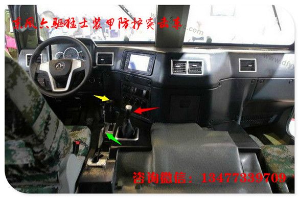 上圖是6輪驅(qū)動(dòng)長(zhǎng)軸2代猛士裝甲車駕駛艙特寫。較1代猛士裝甲車有24處改進(jìn)。諸如:粗握把3幅面方向盤可以減緩駕駛員操作時(shí)的疲勞程度(1代猛士的方向盤為細(xì)握把,駕駛時(shí)間超過2小時(shí)手掌酸痛)。全新的組合儀表,將發(fā)動(dòng)機(jī)轉(zhuǎn)速、車速、發(fā)動(dòng)機(jī)水溫、機(jī)油壓力、蓄電池電壓顯示的更加清晰。各個(gè)功能按鍵全部改為由上至下按壓式大尺寸開關(guān)。而輪胎壓力調(diào)節(jié)開關(guān)從儀表臺(tái)左下側(cè)轉(zhuǎn)移至右側(cè)(此處改進(jìn)有助于駕駛員快速操控)。
