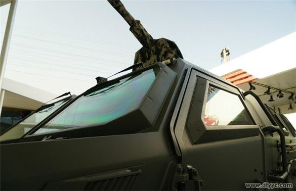 東風(fēng)四驅(qū)防雷反恐戰(zhàn)車全車具備防護7.62毫米口徑穿甲彈攻擊,正向具備防護12.7毫米口徑機槍彈攻擊(100米),而全車所有玻璃可以抵御7.62毫米口徑穿甲彈連續(xù)射擊3次擊穿。為了提升防護級別、密封效能和降低觀察死角,全車防彈玻璃突出車身焊接外側(cè)安裝。