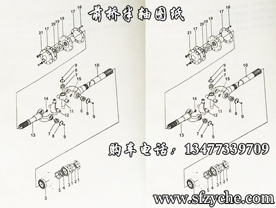 東風(fēng)EQ240尖頭六驅(qū)軍車前橋圖紙,EQ240、EQ2081E、EQ2061E、EQ2082E6D、EQ1093等車型均采用東風(fēng)德納2.8噸級(jí)前橋,前橋裝有三肖式等速萬(wàn)向節(jié),主減速器速比6:35和6:37兩種,老款汽油車型都是6:37齒盆角齒;后期柴油車采用6:35齒盆角齒,輪胎螺絲6孔。下面詳細(xì)提供整根車橋細(xì)節(jié)圖紙: