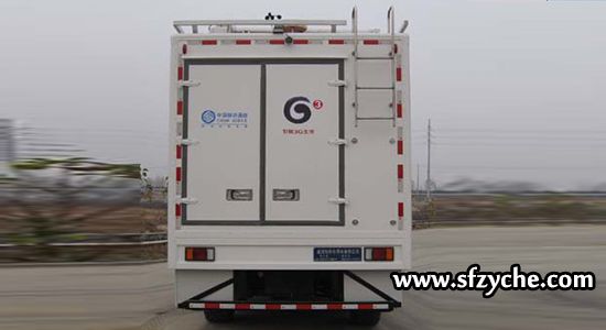1.隨底盤選裝駕駛室頂部空調(diào);2.車后部加裝后梯,后梯的下半部分可拆卸,車輛行駛時可放置廂內(nèi); 3.主要專用裝置:移動通信基站天線、升降塔;4.專用功能:確保在熱點區(qū)域臨時增加同時提供數(shù)個基站的話務(wù)量支持;5.側(cè)面防護(hù)裝置的材質(zhì)為鋁合金,連接方式為螺栓連接;后下部防護(hù)裝置的材質(zhì)為Q235,連接方式為螺栓連接,斷面尺寸為100mm×50mm,離地高度為530mm |