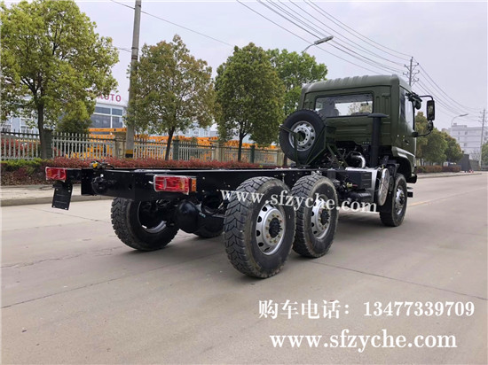 國六排放東風(fēng)天錦六驅(qū)越野底盤配置,東風(fēng)天錦D530一排半駕駛室,6×6驅(qū)動(dòng),康明斯B6.2NS6B210國六發(fā)動(dòng)機(jī)210馬力,最大扭矩:850N.m/1100-1700rpm,排量6.2L、韶齒手動(dòng)六檔變速箱,東風(fēng)德納車橋,前驅(qū)動(dòng)橋5噸雙聯(lián)半軸結(jié)構(gòu),中后橋都為軍工德納5噸驅(qū)動(dòng)橋,315/80R22.5大花紋越野輪胎,280mm雙層大梁,軸距3500+1250mm,電動(dòng)玻璃,方向助力,斷氣剎,ABS,大燈自動(dòng)調(diào)節(jié),自動(dòng)調(diào)整臂,原廠空調(diào)。車架可利用尺寸5000mm。