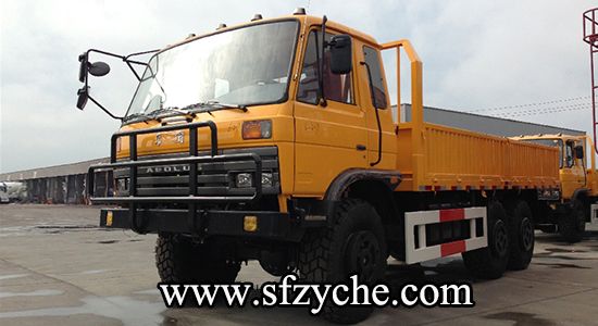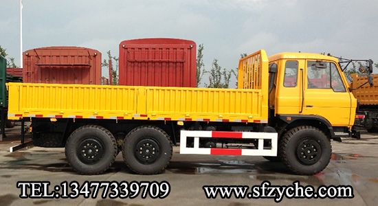 2、詳細(xì)配置:平頭一排半駕駛室,6*6驅(qū)動,康明斯190馬力,韶齒6檔變速箱,斷氣彈簧制動,貫通式中后驅(qū)動橋,12.5R20越野胎,軸距 3500+1250mm,加厚雙層大梁,貨箱4850mm,帶軍用保險杠。(新款仿天錦駕駛室加價1.5萬元)東風(fēng)越野卡車:m.hzqdme.com