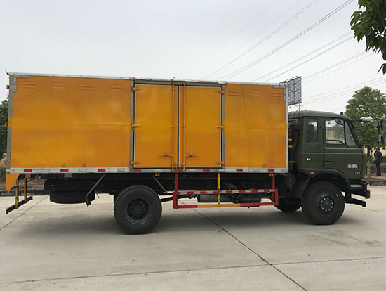 東風(fēng)國(guó)五四驅(qū)越野廂式車廂體材質(zhì):廂體為雙層金屬骨架結(jié)構(gòu),外部為冷扎鋼板,內(nèi)壁采用鋁合金板蒙面,夾層為隔熱阻燃材料填充,鋁花紋底板,側(cè)對(duì)開門,后雙開門,廂體尺寸6050×2360×2100(mm)